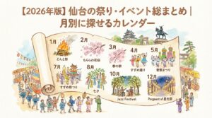 ※本記事は、2025年時点の情報をもとに作成した2026年版です。 日程・会場・交通規制・出店内容は年によって変わる場合があります。 お出かけ前に、必ず公式サイト・主催者発表・仙台市や観光公式のイベント情報で最新の内容を … 続きを読む 【2026年版】仙台の祭り・イベント総まとめ|月別に探せるカレンダー