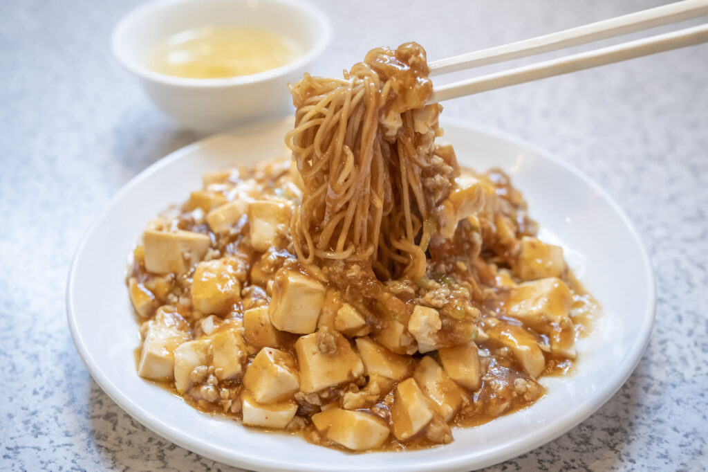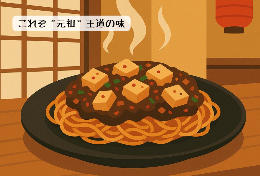 “元祖”の存在。香ばしい焼き麺に、パンチのある麻婆が絡む王道の一杯。歴史と安定感でまずはここから。