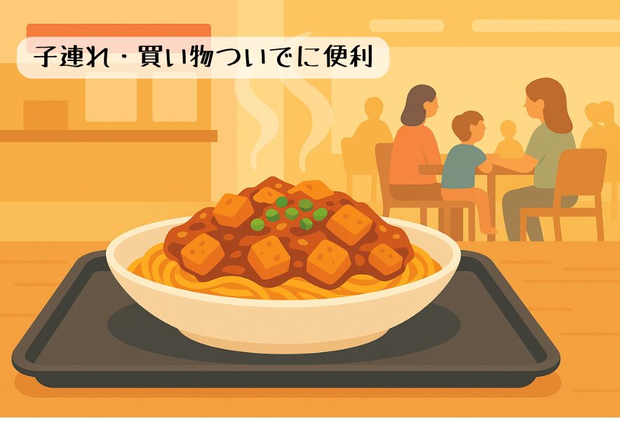 フードコート内で気軽に“元祖の味”にアクセス。子連れ・買い物ついでに便利。