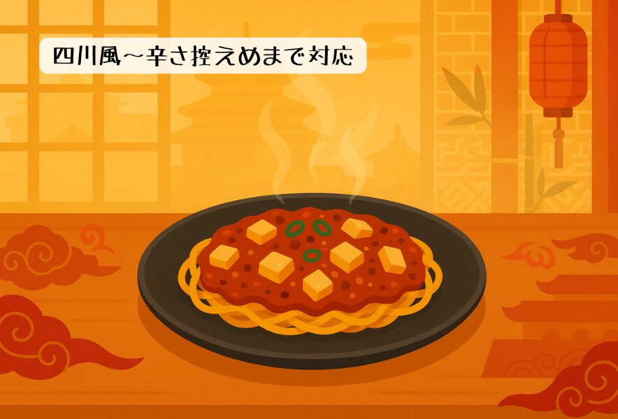 辛さ控えめや花山椒少なめに対応する店が多いので、注文時に相談を。甘めの広東寄りを選ぶのも手。