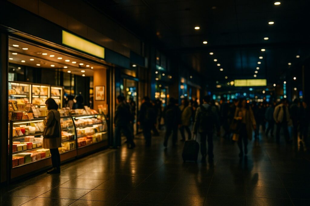 短時間で名物を回収。改札近くの売り場とフードコートを活用。