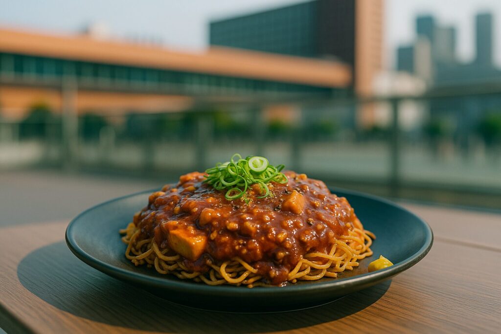 パリッと焼いた麺に麻婆餡をかけるB級ご当地。辛さ調整で自分好みに。