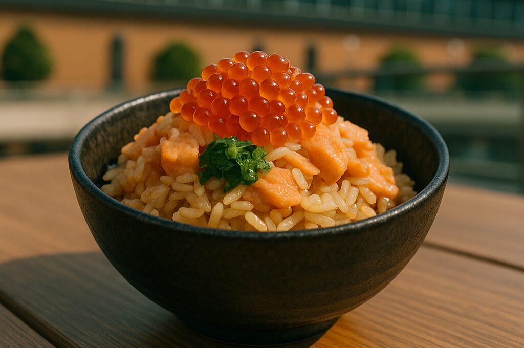 鮭の出汁で炊いたご飯にイクラをのせる秋の名物。