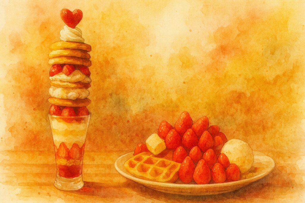 “映え”を楽しむ:ジャンボパフェ&スイーツ大皿