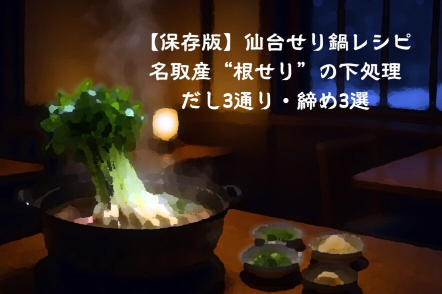 冬の仙台といえば「せり鍋」。名取産の“仙台せり”は、根っこまで食べるのが最大の魅力です。本稿では「せり鍋 仙台 レシピ」を探している方向けに、家庭で失敗しない作り方、根せりの下処理、だし3通り、締め3選、そして旬・入手先 … 続きを読む 【保存版】仙台せり鍋レシピ|名取産“根せり”の下処理・だし3通り・締め3選