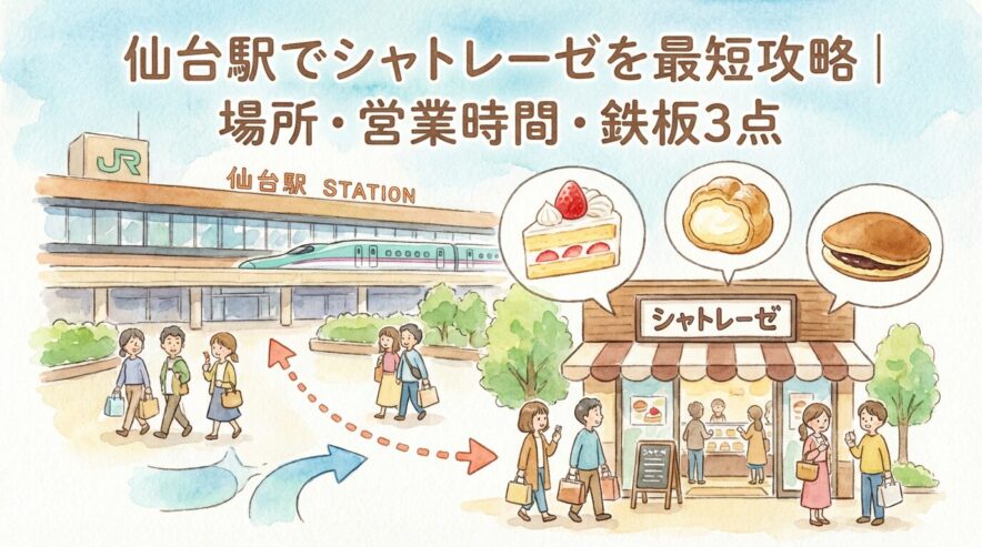特に仙台駅は乗り換え・待ち時間・新幹線前でバタバタしがち。そこでこの記事では、仙台駅直結のスイーツ店「シャトレーゼ JR仙台駅店」に最短でたどり着く場所ガイドと、公式情報ベースの営業時間、そして迷ったらこれだけ買えばOKな鉄板3点を、サクッとまとめます。