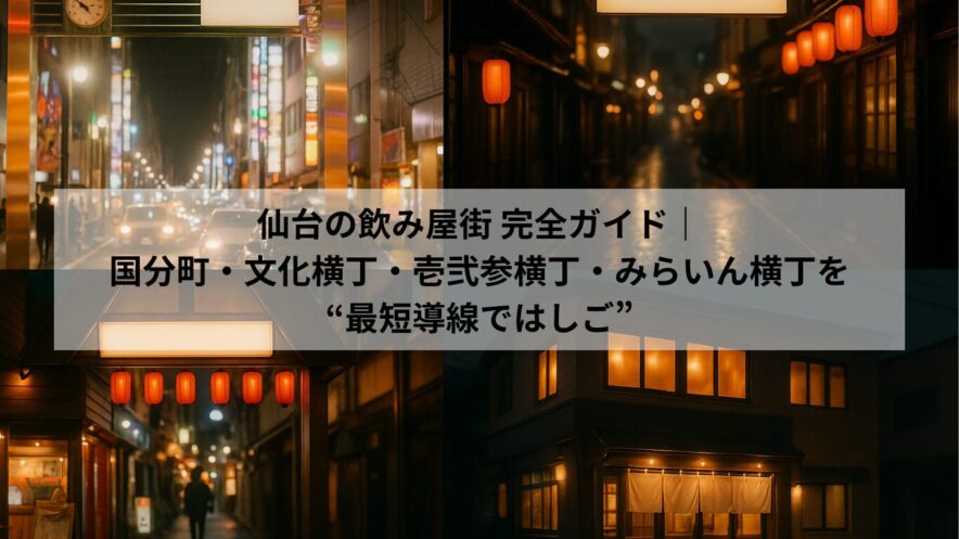 仙台の夜は、駅から徒歩圏に横丁文化×歓楽街がギュッと詰まった“短距離・高密度”スタイル。はじめての方が迷いやすいのは「どこから回るか」「どれくらいの予算と時間が必要か」。本ガイドでは、国分町・文化横丁・壱弐参(いろは)横丁・仙台みらいん横丁の4エリアを、目的別に最短導線で楽しむコツと、地元目線の安全・マナー情報までまとめました。