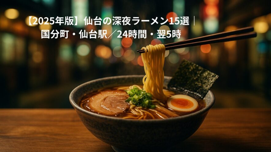 確実性で選ぶなら「山岡家/一蘭」、朝まで粘るなら「一閃閣/とんとん」「おとど」、駅前の最後の一杯は「末廣/町田商店/ラーメンビッグ」。週末・イベント時は必ず最新情報を公式で確認しましょう。関連記事「国分町グルメ」「家系まとめ」「朝ラー特集」もぜひ。
