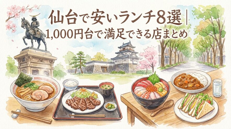仙台で安いランチを探す人向けに、仙台駅・朝市・一番町のコスパ店を厳選。1,000円前後を中心に、混雑回避、雨の日の動きやすさ、来店前チェックまでわかりやすくまとめました。