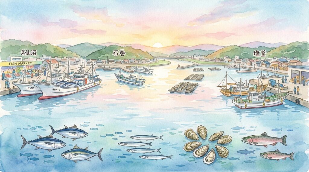 ノルウェー沖、カナダ・ニューファンドランド島沖グランドバングと並ぶ三陸沖の豊富な漁場資源により、宮城県は水産大県としての地位を確立しています。