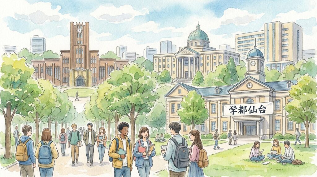 東北大学をはじめとする多くの大学・専門学校が集積した「学都仙台」として知られ、若年層の比率が高い特徴があります。