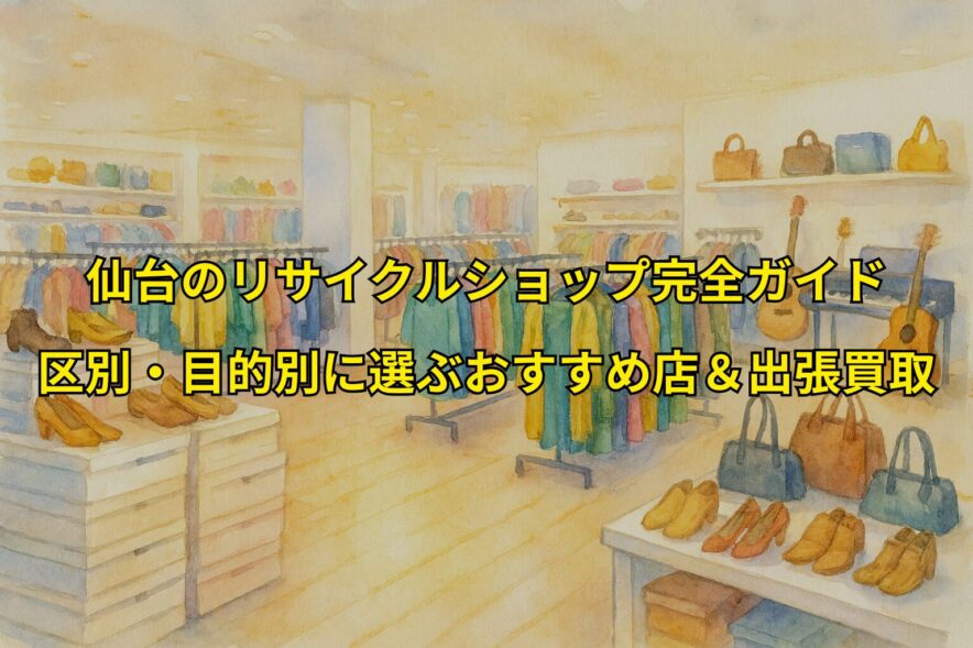 この記事では、仙台のリサイクルショップを区別・目的別・買取方法別に整理し、「自分の状況に合ったお店・サービスの選び方」を地元目線で分かりやすくまとめます。車の有無や住んでいるエリア、売りたいモノの種類、予算や時間の都合に合わせて、どんな選び方ができるのかイメージしながら読んでみてください。