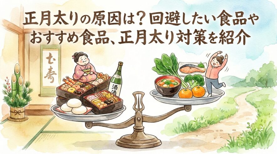 正月太りの原因は、餅やおせちなどの食べ過ぎだけでなく、飲酒、運動不足、睡眠リズムの乱れ、冬の冷えやむくみが重なって起きやすくなります。まずは「脂肪か、むくみか」を目安として見分けて、要注意食品は「禁止」ではなく頻度と量を調整。おすすめ食品(たんぱく質・食物繊維・汁物)で満足感を作りながら、1週間単位で正月太り対策を続けるのがコツです。