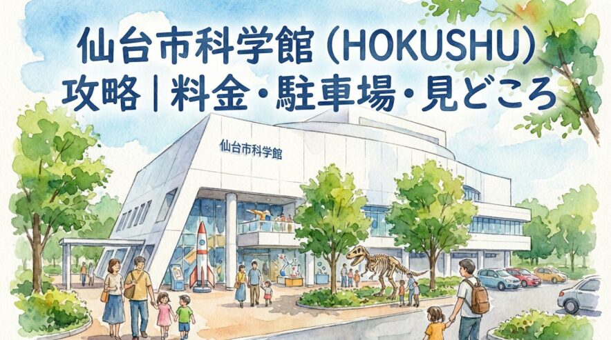この記事では、料金・休館日・駐車場・アクセス(仙台駅→地下鉄→旭ヶ丘駅→徒歩)を先に整理したうえで、見どころと回り方(60分・120分・180分モデルコース)まで一気に解決します。仙台市科学館(愛称:HOKUSHU仙台市科学館/旧愛称:スリーエム仙台市科学館)の呼び方で迷っている方も、このページでスッキリできます。