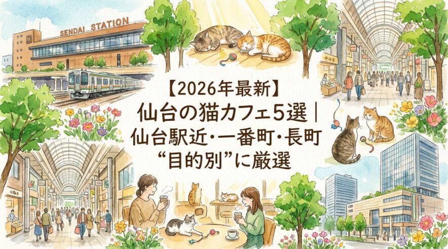 この記事では、仙台駅近・一番町・長町の3エリアを軸に、目的別に選びやすい猫カフェ5選を厳選しました。料金の目安、予約の要否、アクセス、注意点までまとめています。雨の日でも歩きやすい一番町アーケードや、買い物ついでに寄りやすい駅近スポットなど、仙台ならではの動線も意識して紹介します。