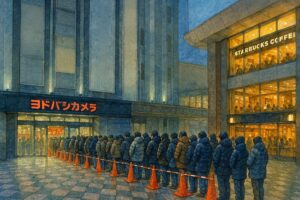 例年は1月2日朝からオープンし、開店前には入口に行列ができることも多いスポットです。とくに家電系の「当たり福袋」を狙う場合は、早めの時間帯に並ぶ心構えをしておいたほうが安心です。