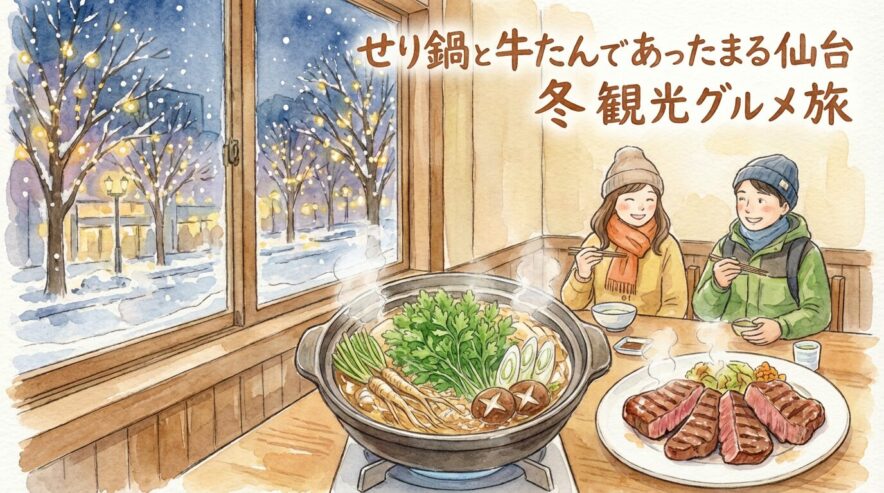 仙台の冬は日没が早く、夕方以降は一気に夜モード。昼間は観光スポットや街歩きを楽しみ、夜はせり鍋や牛たんで温まる、という「昼=観光」「夜=グルメ」のリズムで旅程を組むのがおすすめです。