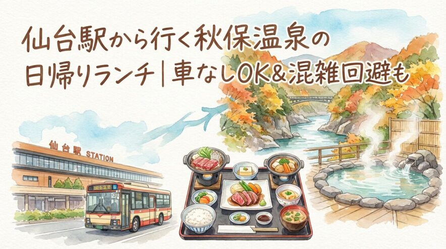 「秋保温泉で日帰りランチを楽しみたい。でも車がないし、週末は混むって聞くし、そもそも“ランチだけ”と“温泉付き”どっちが正解?」——そんな迷い、めちゃくちゃ分かります。秋保は仙台中心部から近い分、気軽に行ける反面、時間帯や選び方を間違えると“待つだけで終わる日帰り”になりがちです。