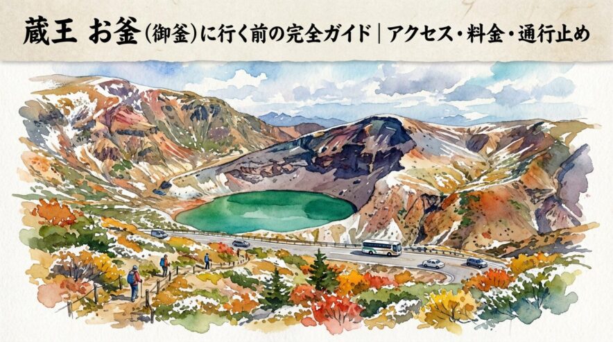 蔵王 お釜(御釜)に行きたいけれど、「通行止めで行けない?」「料金はいくら?」「混雑や霧で見えなかったら?」と不安になりますよね。この記事では、仙台発で動く人向けに、アクセス・料金・通行止め確認の手順を「ひとつにまとめて」解説します。さらに、晴れでも見えない日の立ち回り、混雑回避、子連れ・シニアでも安心なポイントまで網羅。出発前にここだけ読めば、当日の失敗がグッと減ります。