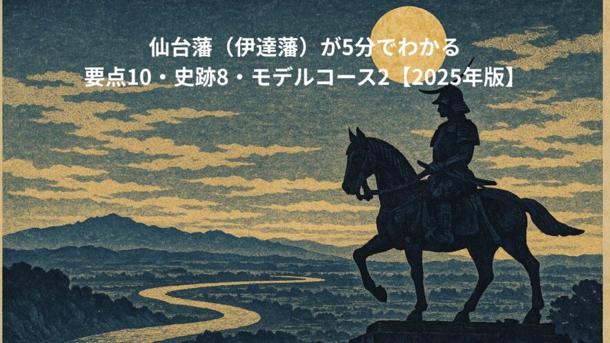 本記事は、まず要点10で仙台藩の全体像をつかみ、次に史跡8と半日・1日モデルコース2で“現地で体験”できるように構成しています。2025年版の留意点(休館・イベント変更等)は各所に注意書きを入れました。歴史の理解から今日の街歩きまで、これ一つでOKです。